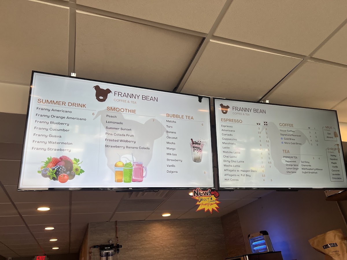 Welcome to Franny Bean Coffee, a charming coffee shop nestled in Fairview, NJ. Their menu boasts a delightful array of beverages, ensuring coffee aficionados and casual drinkers alike will find something to love. Savor rich espresso options, including a classic Americano and a creamy Latte, with prices starting as low as $3.00. For those seeking a delightful twist, indulge in the Chai Latte or their house-made flavorful chai.
