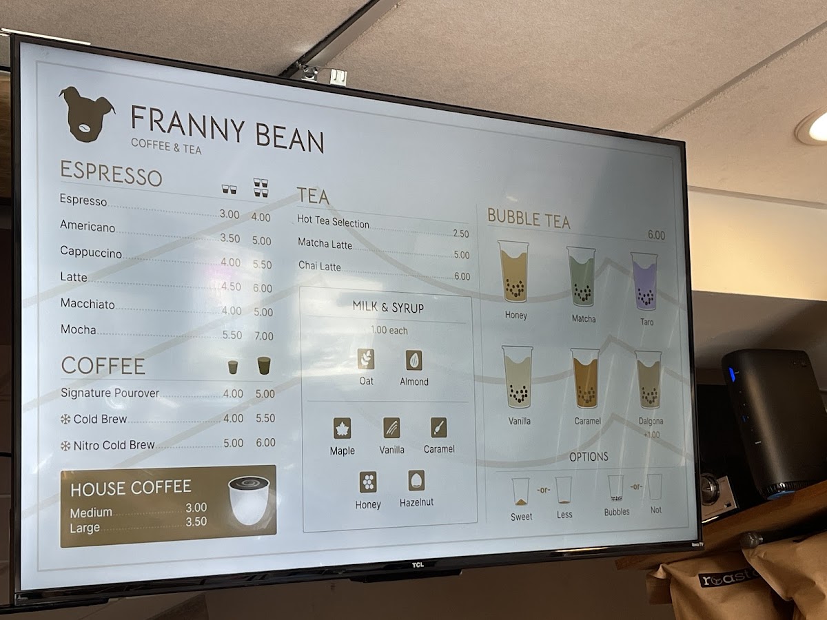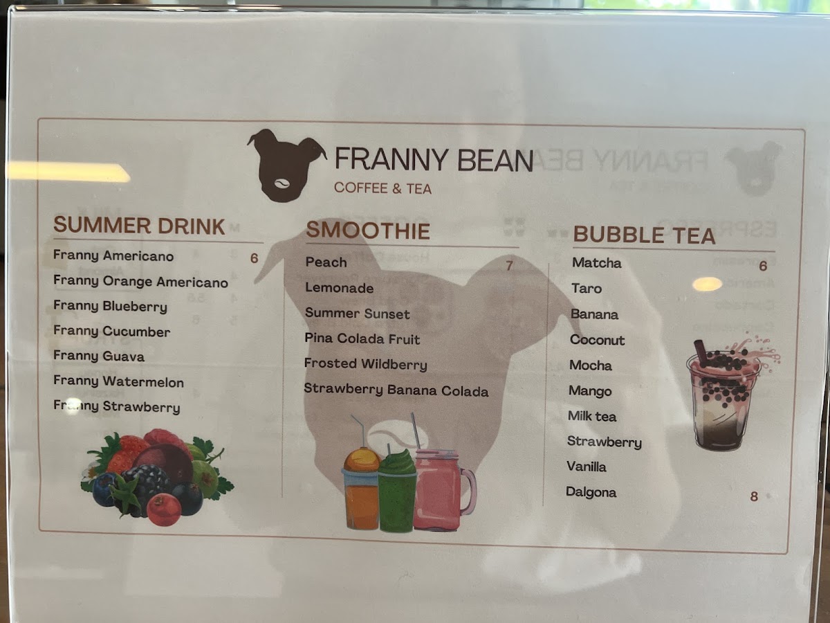 Franny Bean Coffee Menu